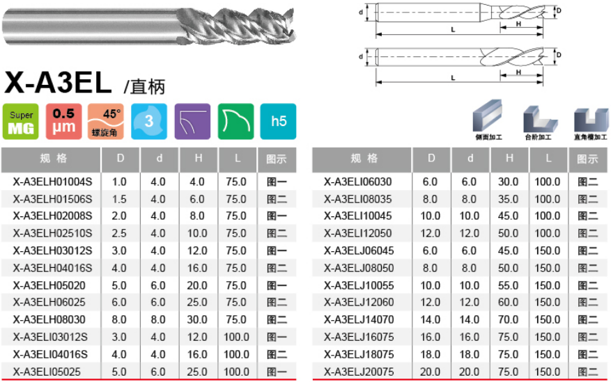 三刃长柄铝用平头立铣刀