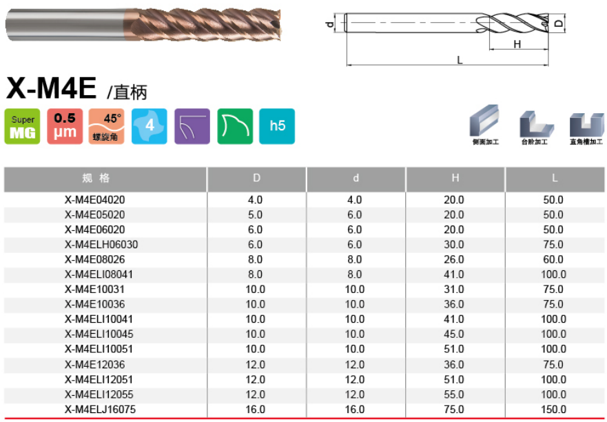 四刃模架专用平头立铣刀