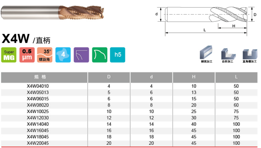 四刃直柄波刃粗铣刀