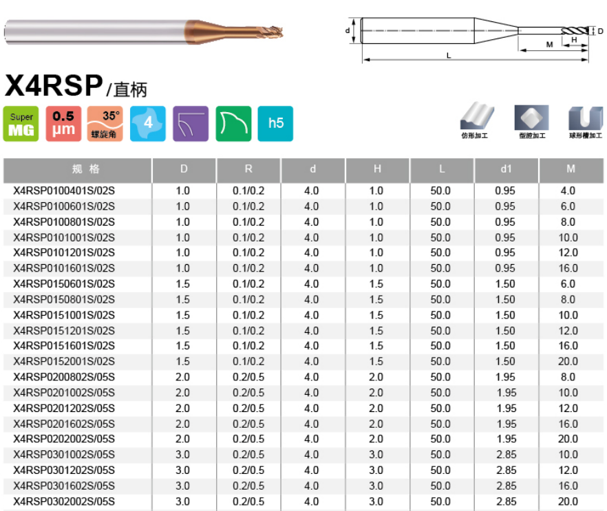 四刃深沟圆鼻立铣刀